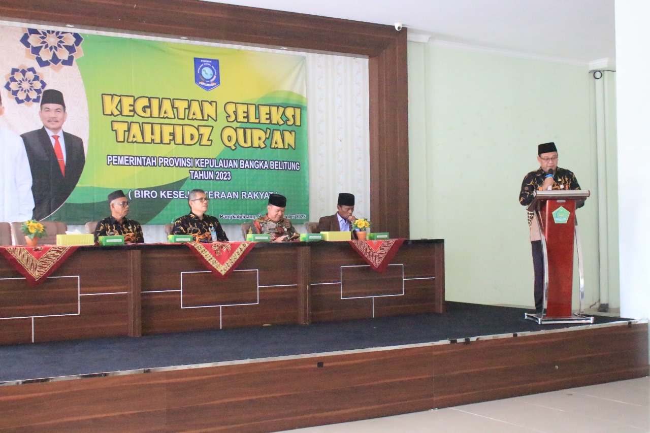 PANGKALPINANG - Kegiatan Seleksi Tahfidz Quran Pemerintah Provinsi Kepulauan Bangka Belitung (Pemprov Kep. Babel) terus berlanjut. Pada tahun 2023, kegiatan ini diikuti oleh 675 Hafiz Hafizah dengan kategori hafalan 5 juz, 10 juz, 15 juz, 20 juz, 25 juz, dan 30 juz yang berdasarkan jenjang pendidikan mulai dari SD hingga perguruan tinggi.
