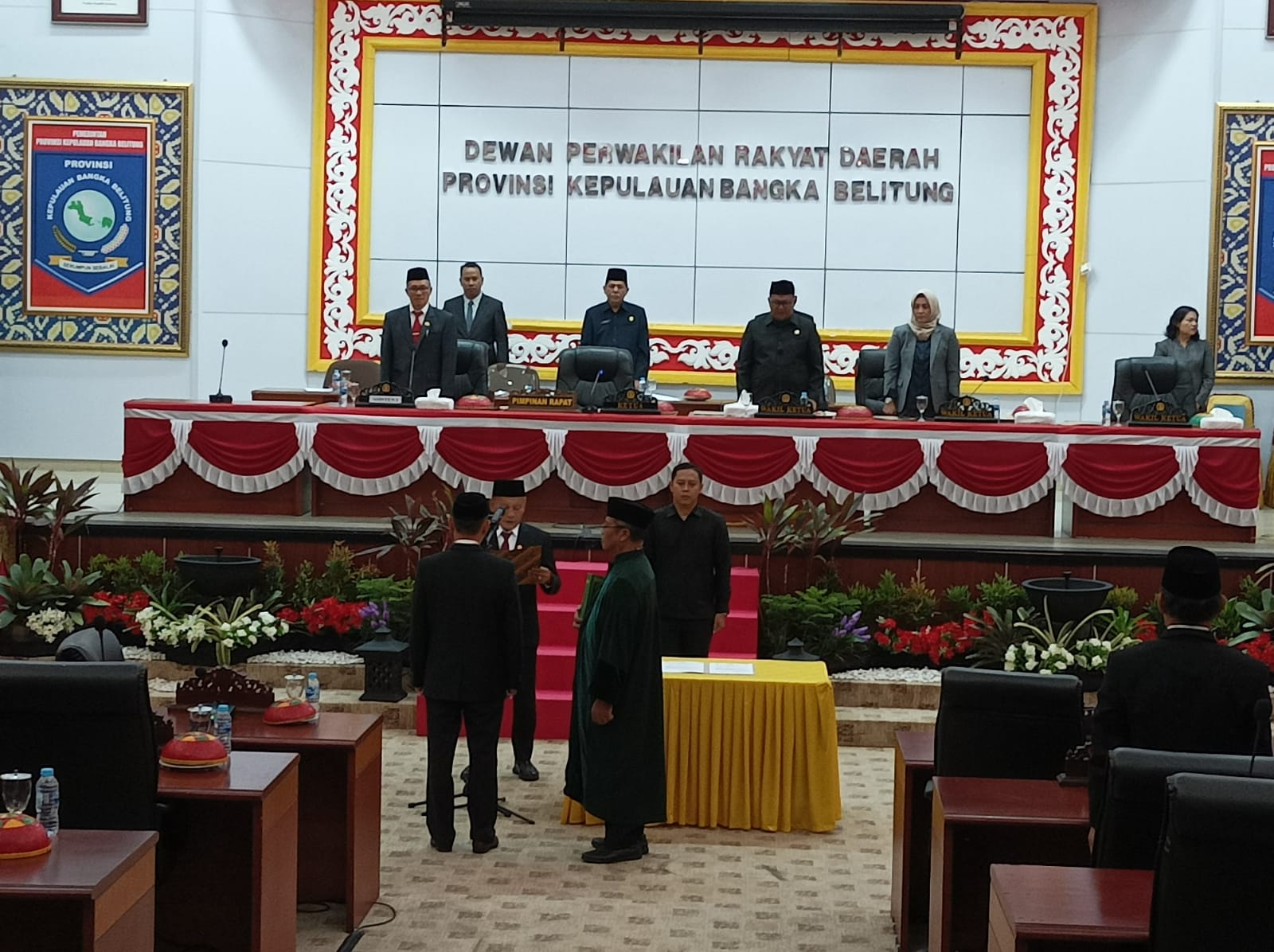 Tak lupa ia juga menyampaikan ucapan terima kasih dan penghargaan setinggi-tingginya kepada anggota DPRD sebelumnya, yakni H. Yusderahman atas pengabdian dan kerjasamanya selama ini sebagai anggota DPRD Bangka Belitung.