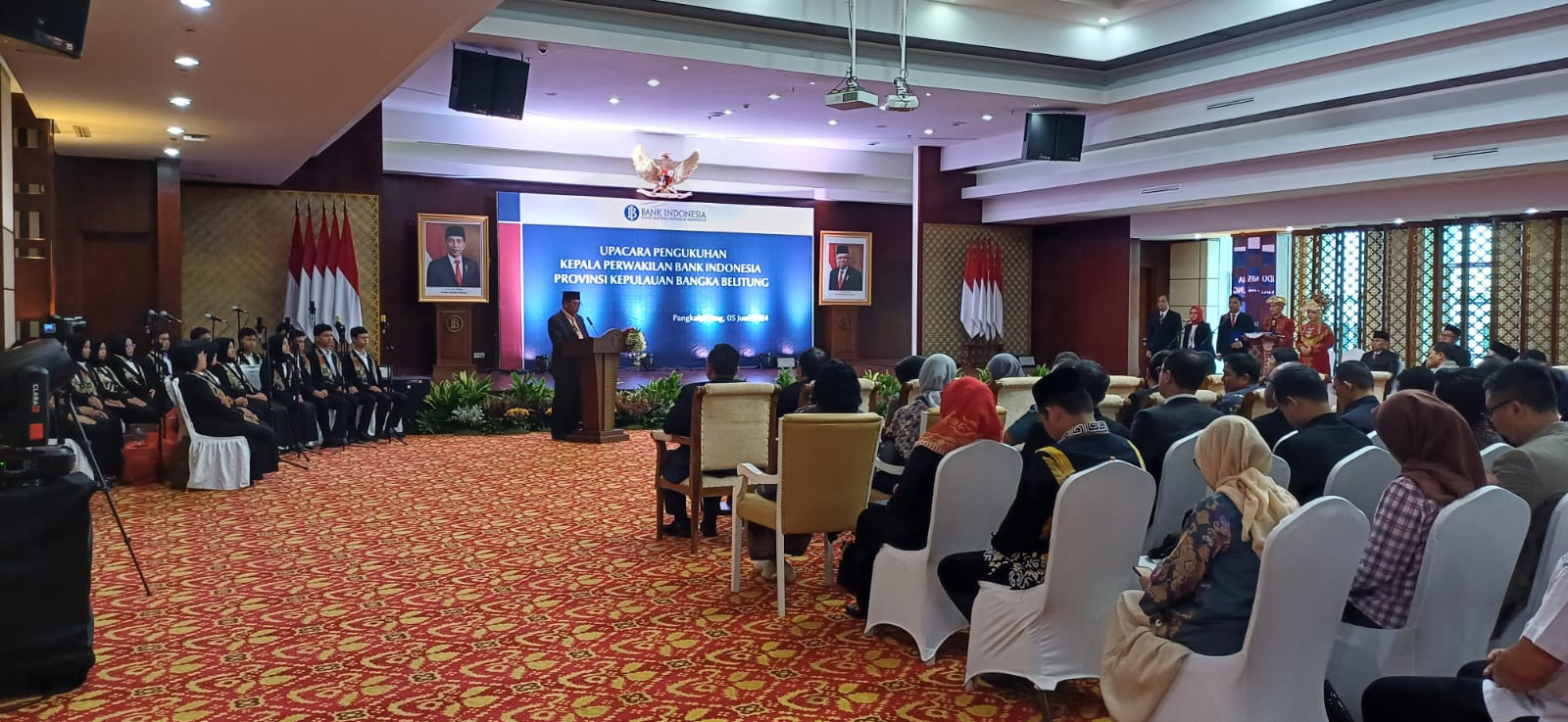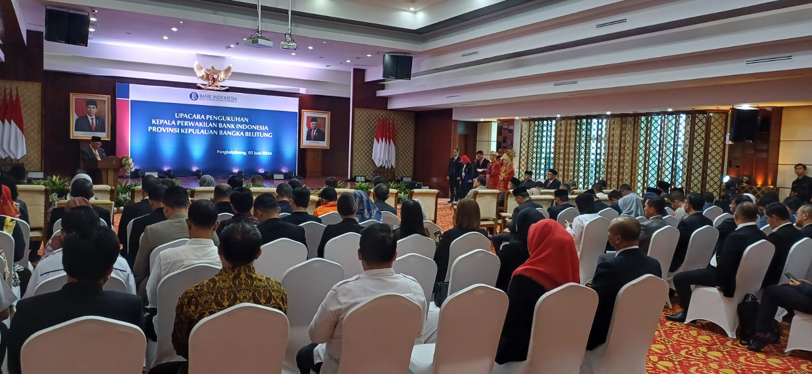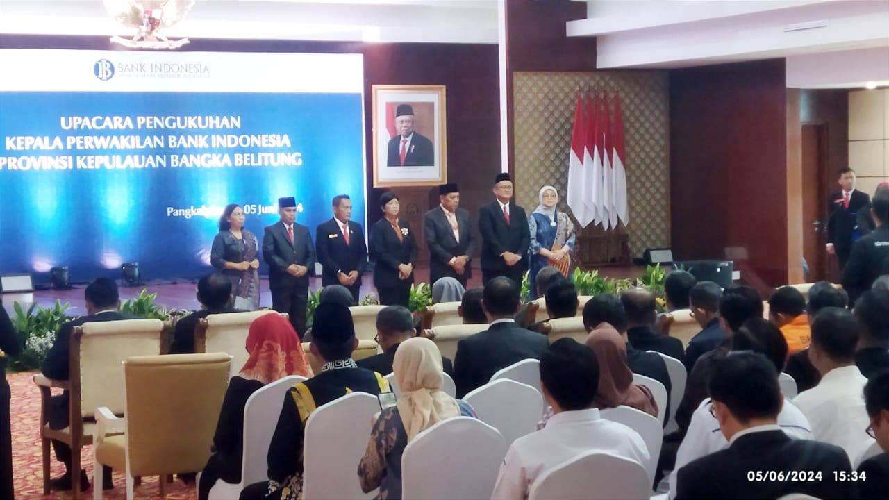 Ucapan selamat disampaikan Plt. Asisten Hartono dalam sambutannya saat acara Pengukuhan Kepala Perwakilan BI Prov. Kep. Babel Tahun 2024 di Ruang Tanjung Kelayang Lt.4, Kantor Perwakilan Bank Indonesia, Air Itam Pangkalpinang, Rabu (5/6/24).