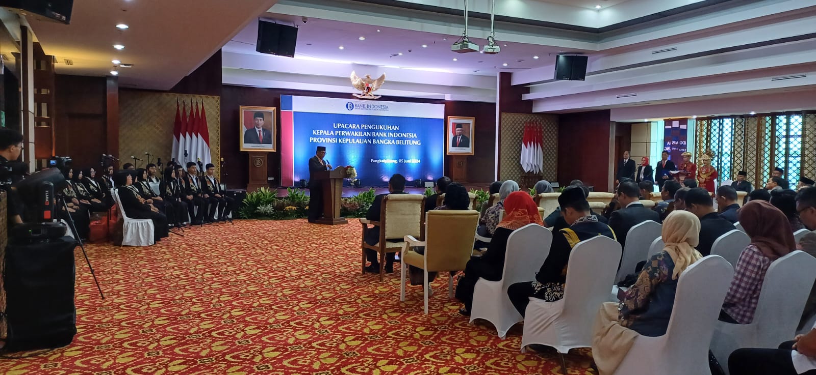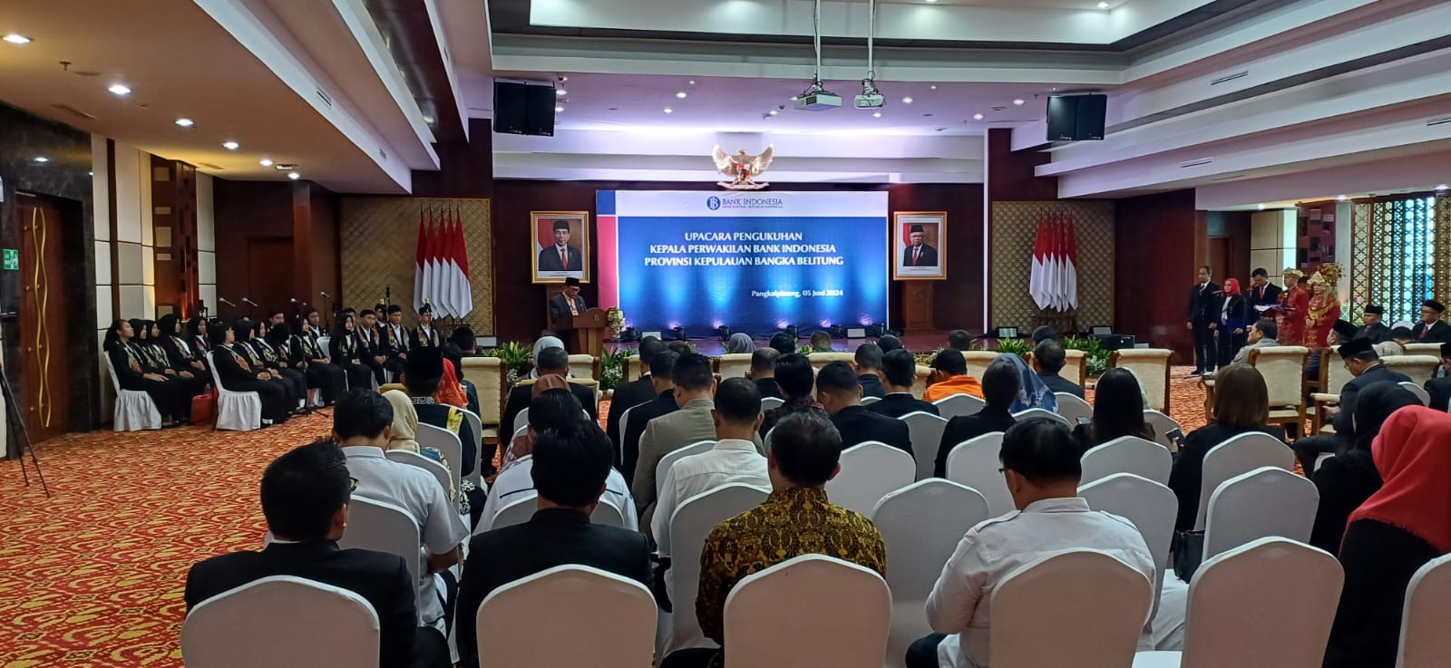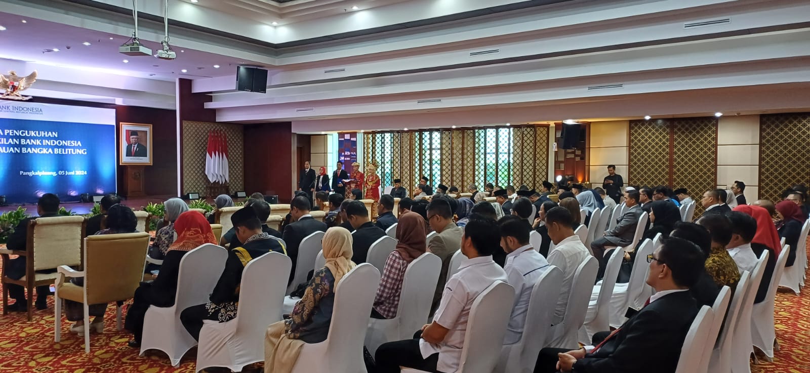 Ucapan selamat disampaikan Plt. Asisten Hartono dalam sambutannya saat acara Pengukuhan Kepala Perwakilan BI Prov. Kep. Babel Tahun 2024 di Ruang Tanjung Kelayang Lt.4, Kantor Perwakilan Bank Indonesia, Air Itam Pangkalpinang, Rabu (5/6/24).