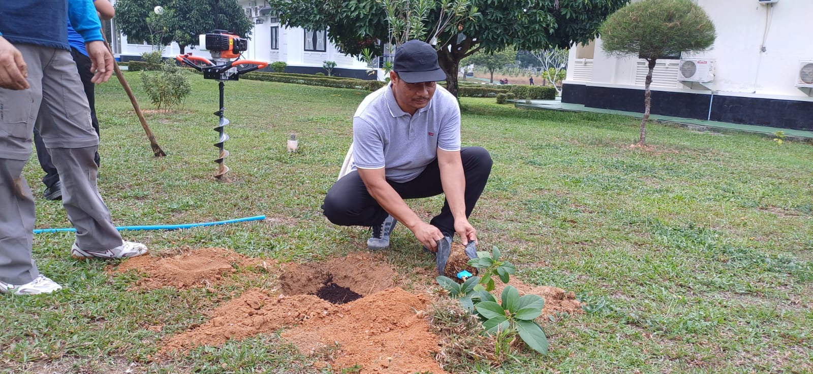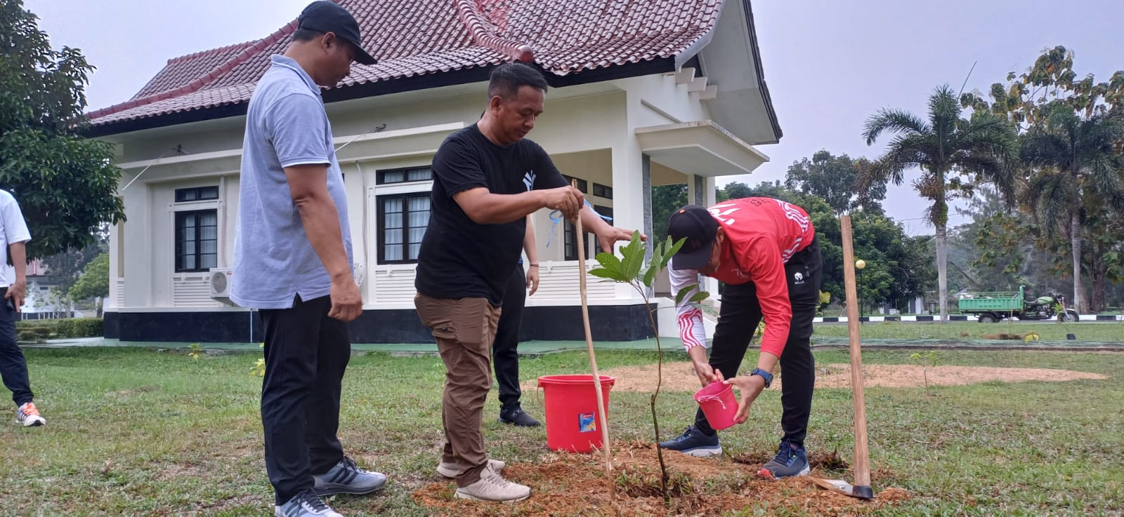"Kami melakukan penanaman tanaman buah dan juga tanaman lokal di sekitar rumah dinas. Semoga siapapun nantinya yang akan memetik buah ini, kita semua mendapat berkahnya," ujar Pj. Gubernur Sugito yang segera di aminkan oleh jajaran Biro Umum yang hadir.