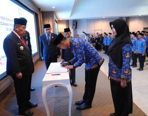 PANGKALPINANG - Gubernur Kepulauan Bangka Belitung (Kep. Babel) Hidayat Arsani resmi mengangkat dan melantik 394 Pegawai Pemerintah dengan Perjanjian Kerja (PPPK), Tenaga Kesehatan dan Guru Formasi tahun 2024 di Ruang Pasir Padi Kantor Gubernur Air...