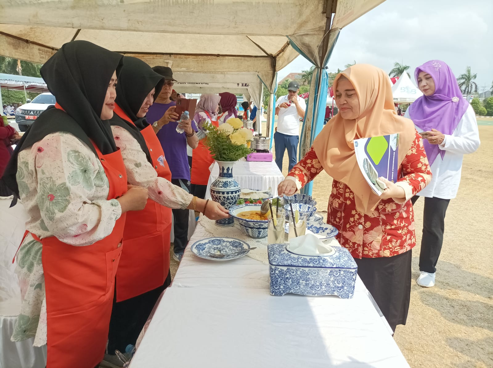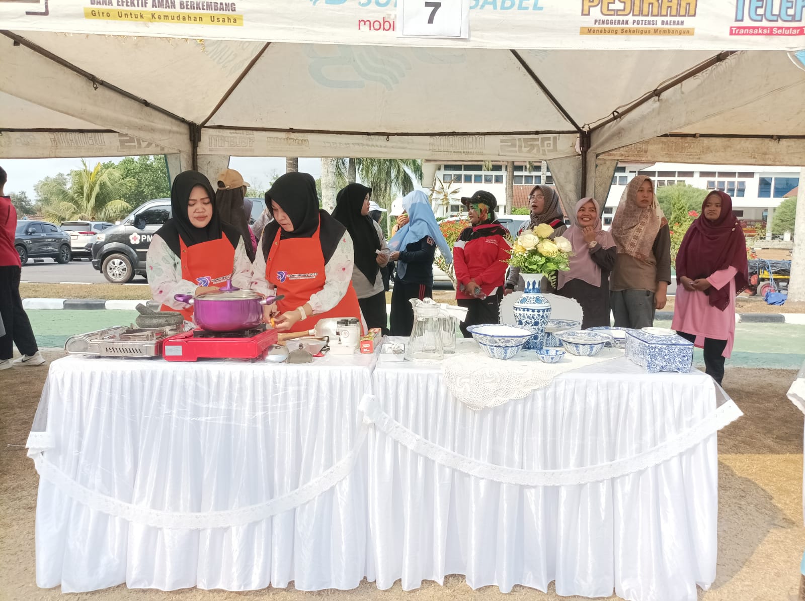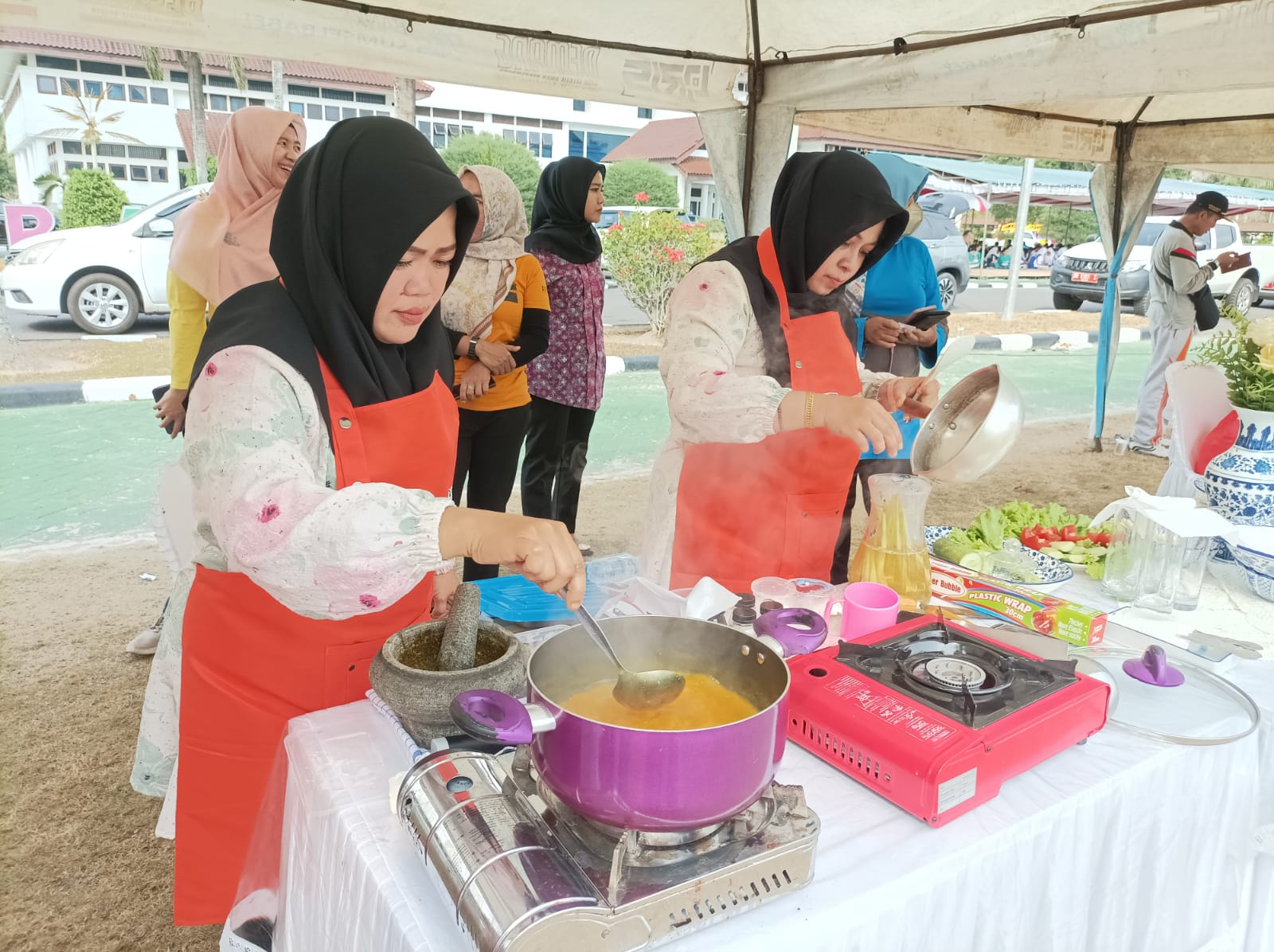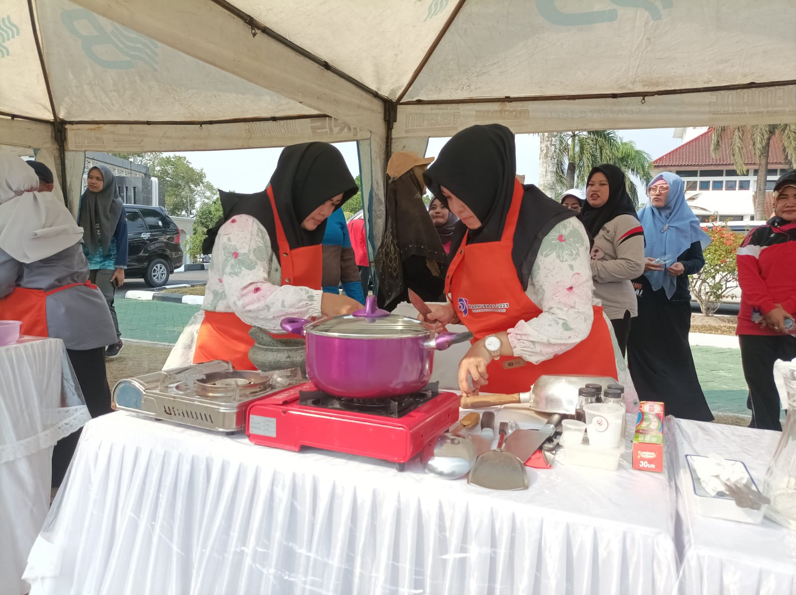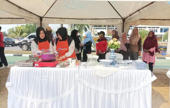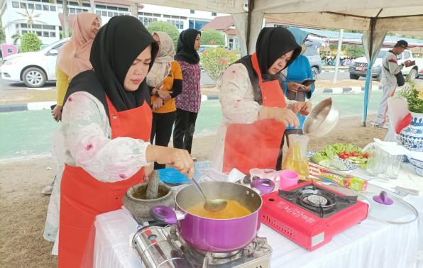 PANGKALPINANG - Kepala Biro (Karo) Umum Setda Provinsi Kepulauan Bangka Belitung (Prov. Kep. Babel) Burhanudin, turut memeriahkan rangkaian Hari Perhubungan Nasional (Harhubnas) ke-53, dengan mengutus dua orang wakilnya, yakni Yuniar dan Mirnanda Analisa, pada lomba masak masakan tradisional Bangka Belitung di Halaman Kantor Gubernur Kep. Babel, Jumat (29/9/23).