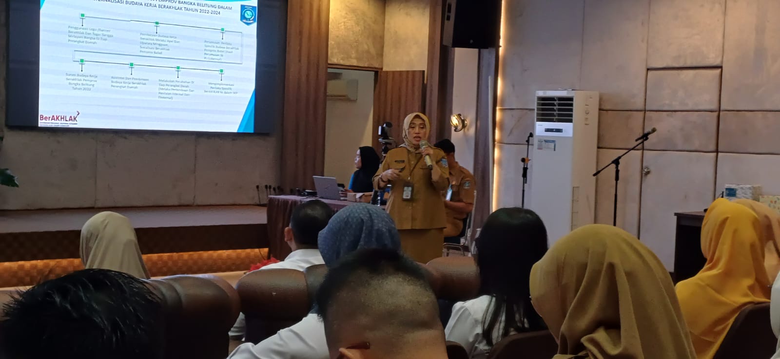 Sementara Kabag RB Biro Organisasi Wardati menyampaikan capaian yang sudah dilakukan Pemprov Kep. Babel dalam internalisasi budaya kerja BerAKHLAK tahun 2022-2024. Yaitu, penggunaan logo BerAKHLAK dan tagar Bangga Melayani Bangsa di tiap Perangkat Daerah, pembacaan budaya kerja BerAKHLAK melalui apel dan upacara mingguan.