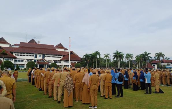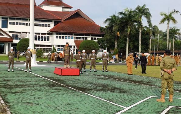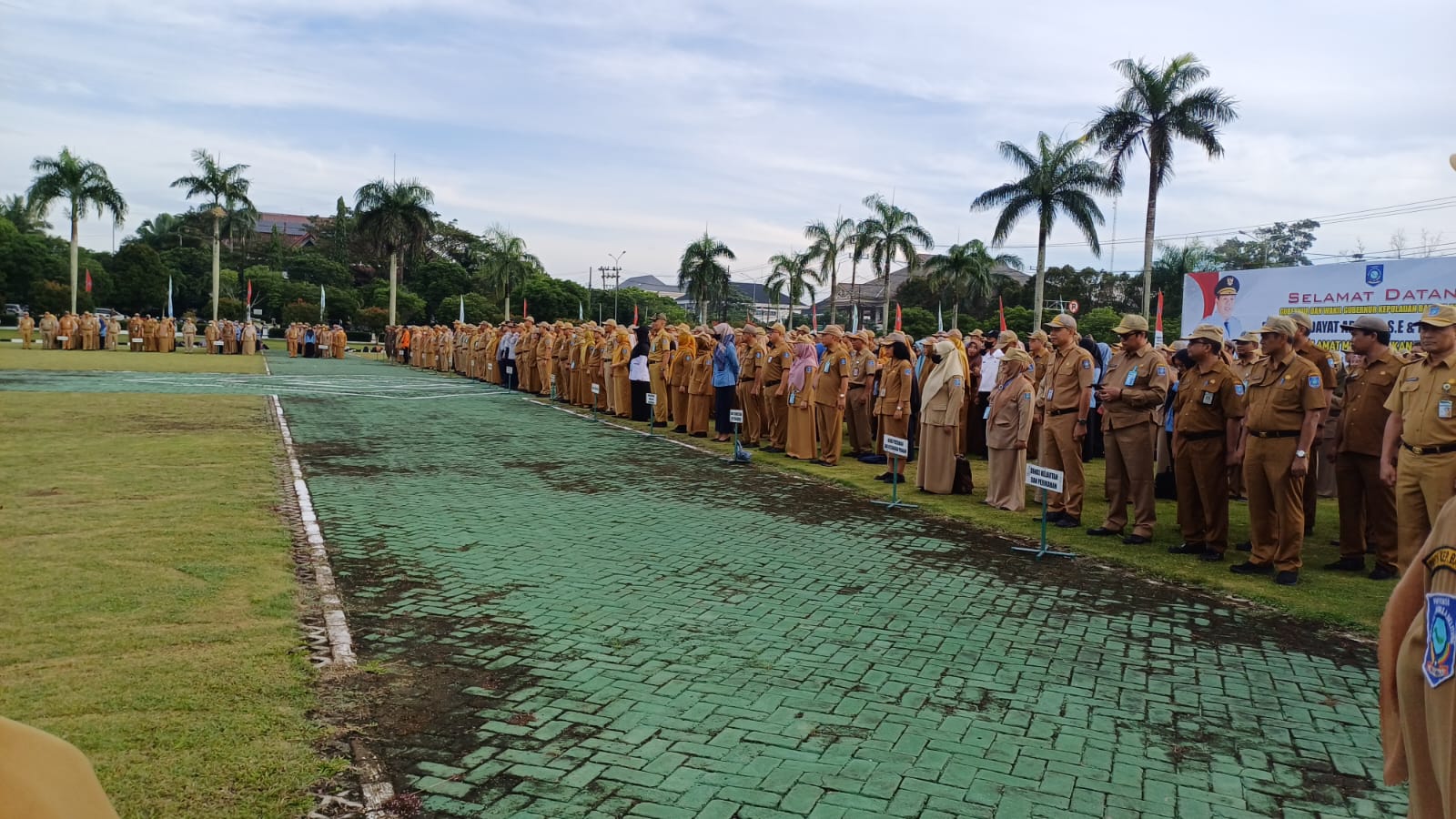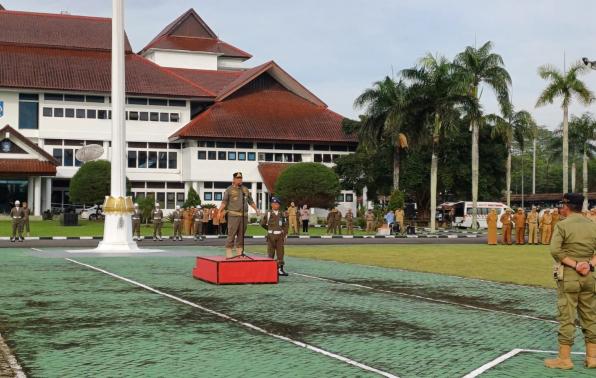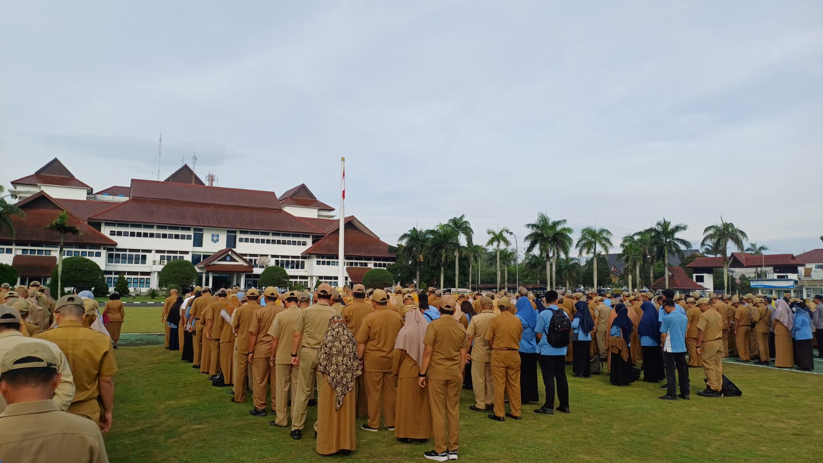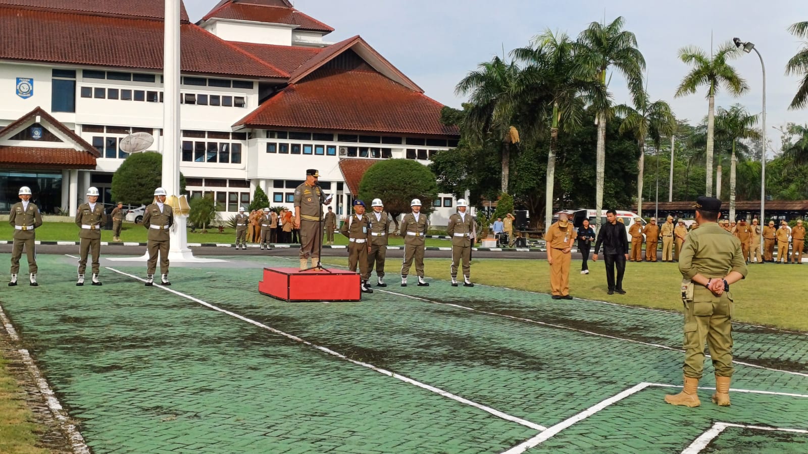 PANGKALPINANG - "Mulai hari ini, apel mingguan dilaksanakan sebulan sekali," ujar Gubernur Kepulauan Bangka Belitung (Kep. Babel) periode 2025-2030 Terpilih Hidayat Arsani saat memimpin apel untuk pertama kalinya di hadapan seluruh pegawai Pemerintah Provinsi (Pemprov) Kep. Babel, Senin (21/4/25), di halaman Kantor Gubernur Babel.