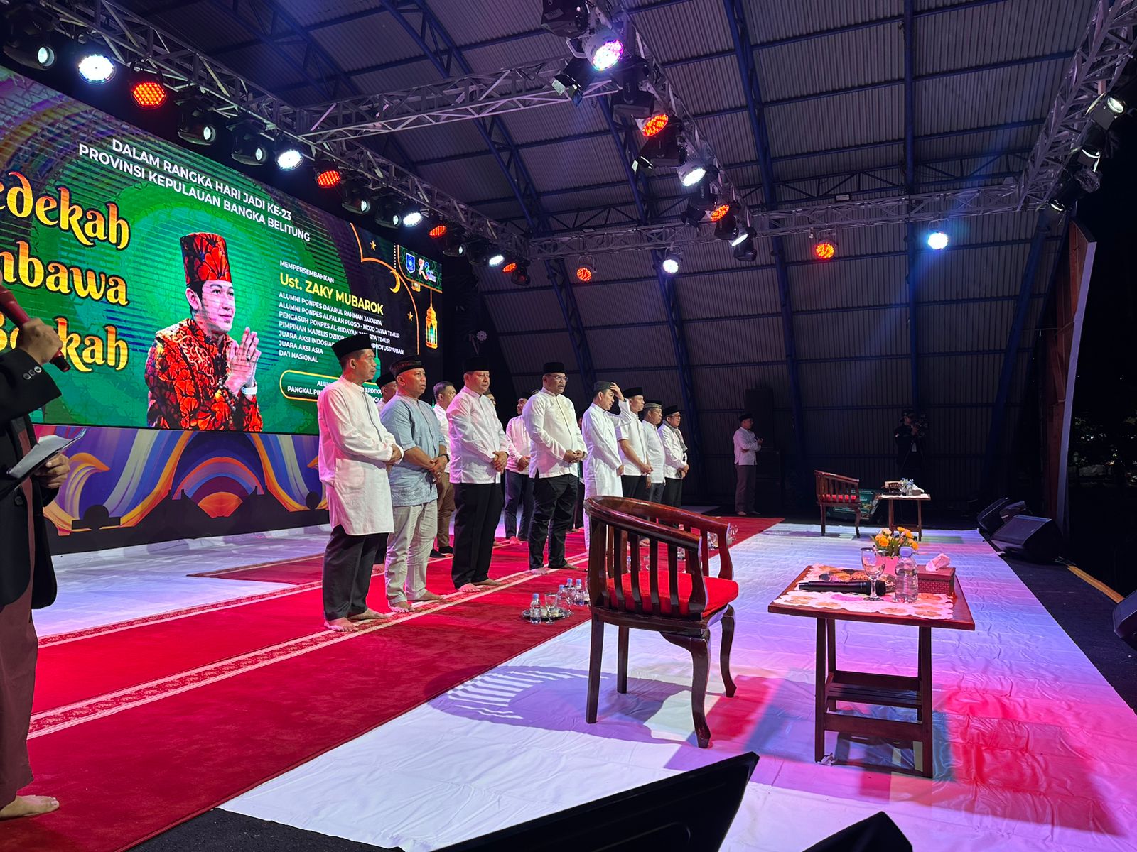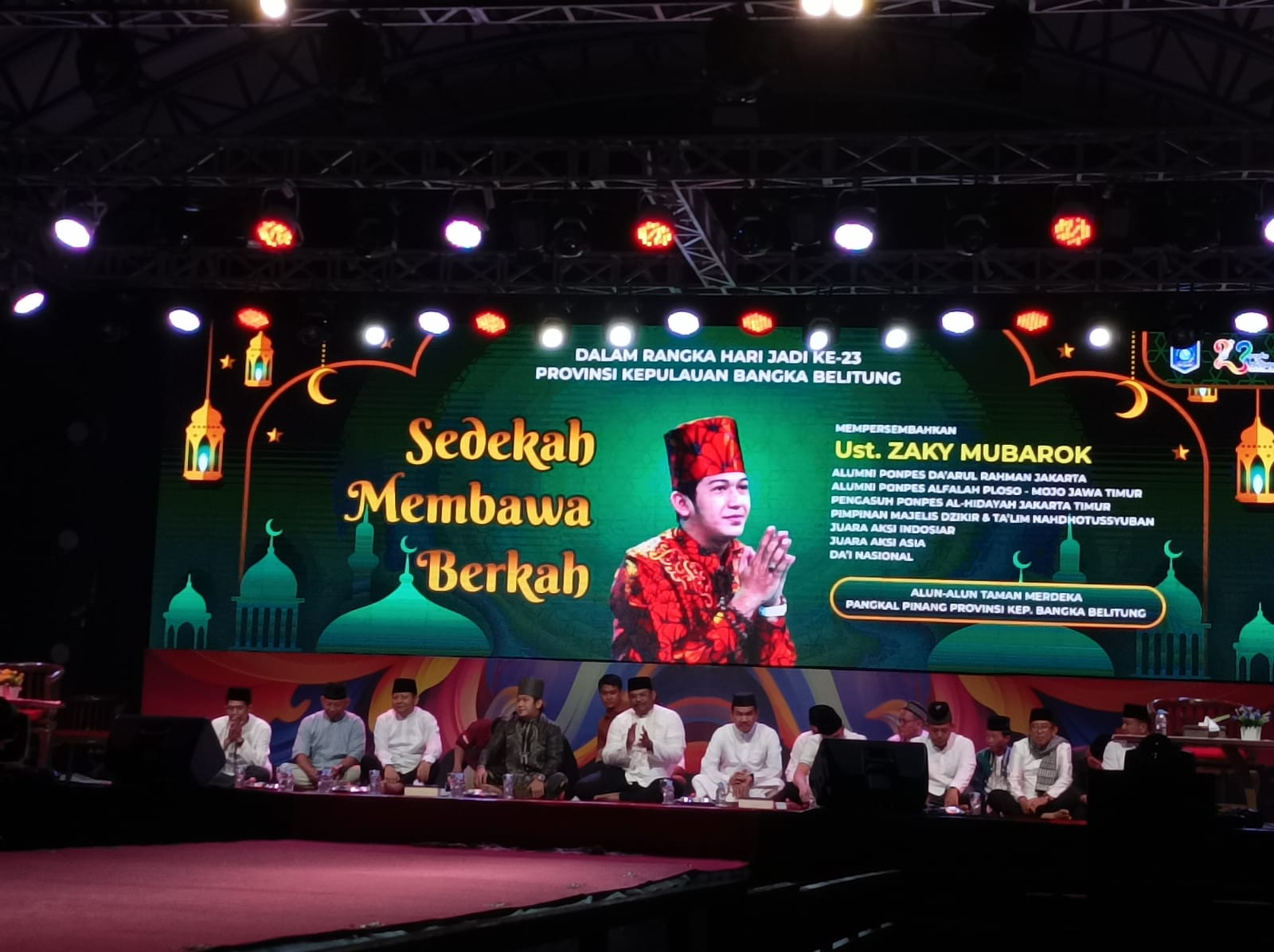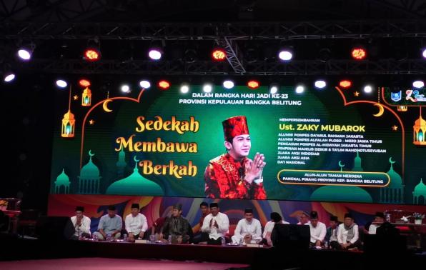 Sementara, ust. Zaky Mubarok yang diundang untuk memberikan ceramah di hari jadi Provinsi Kepulauan Bangka Belitung ini, mengangkat tema ceramah "Sedekah Membawa Berkah".
