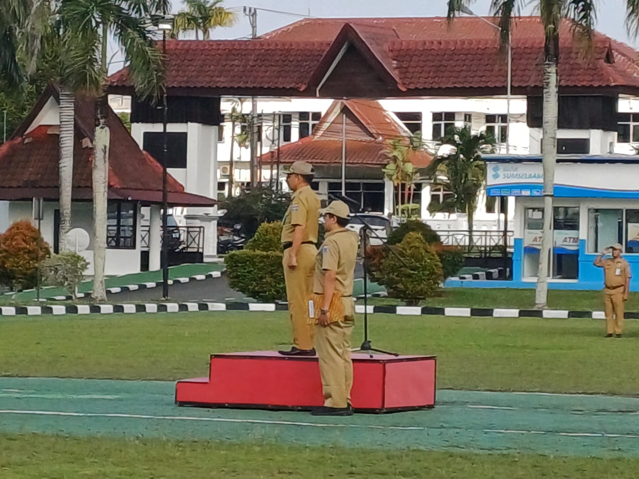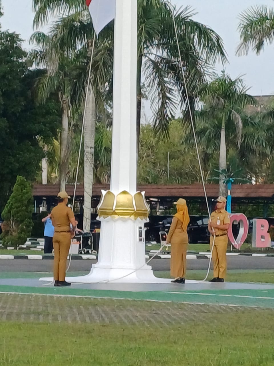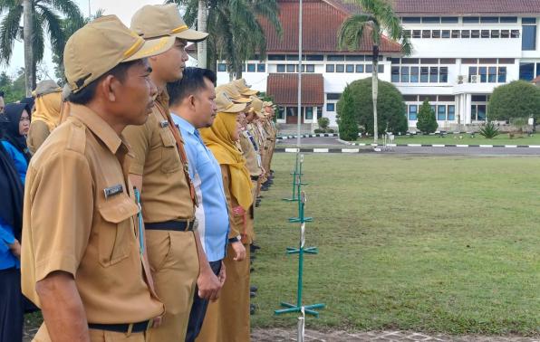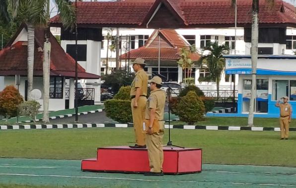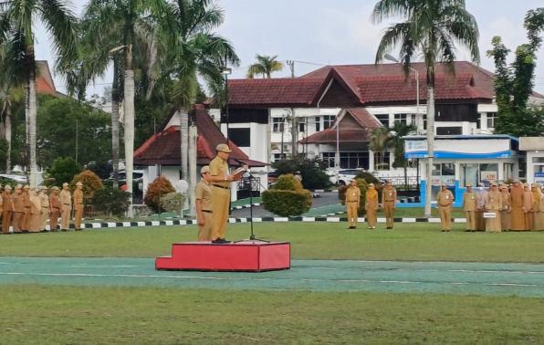 PANGKALPINANG - Asisten Administrasi Umum Yunan Helmi, pimpin Upacara Mingguan Lingkungan Pemerintah Provinsi Kepulauan Bangka Belitung (Pemprov. Kep. Babel) di Lapangan Upacara Kantor Gubernur Air Itam Pangkalpinang, Senin (5/2/24).