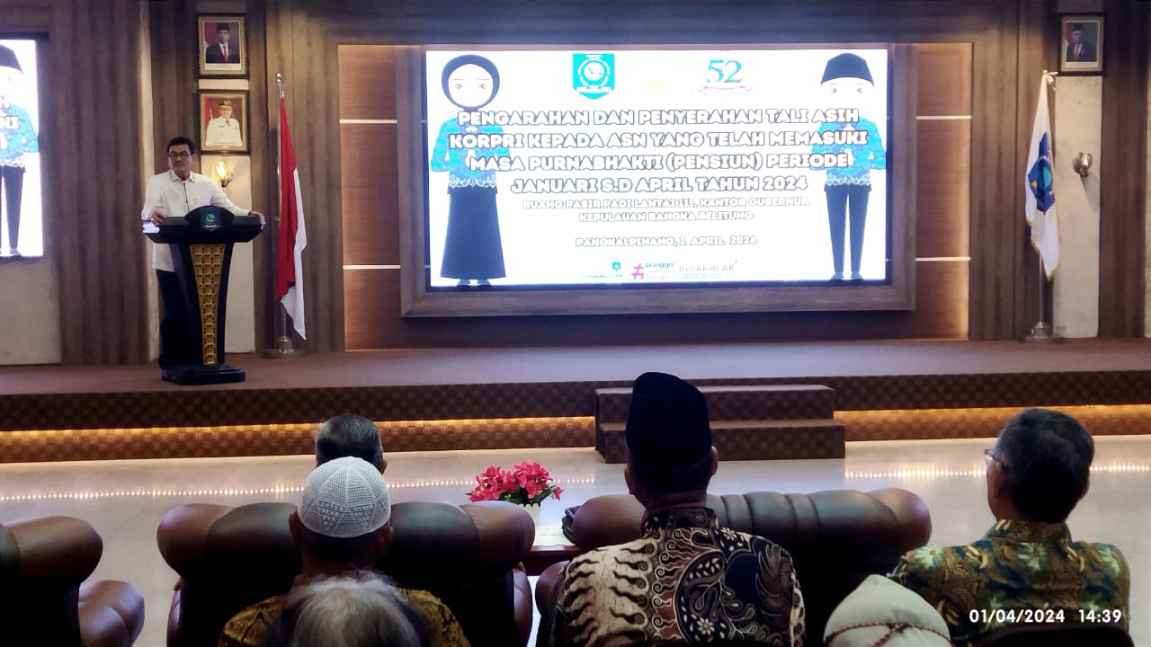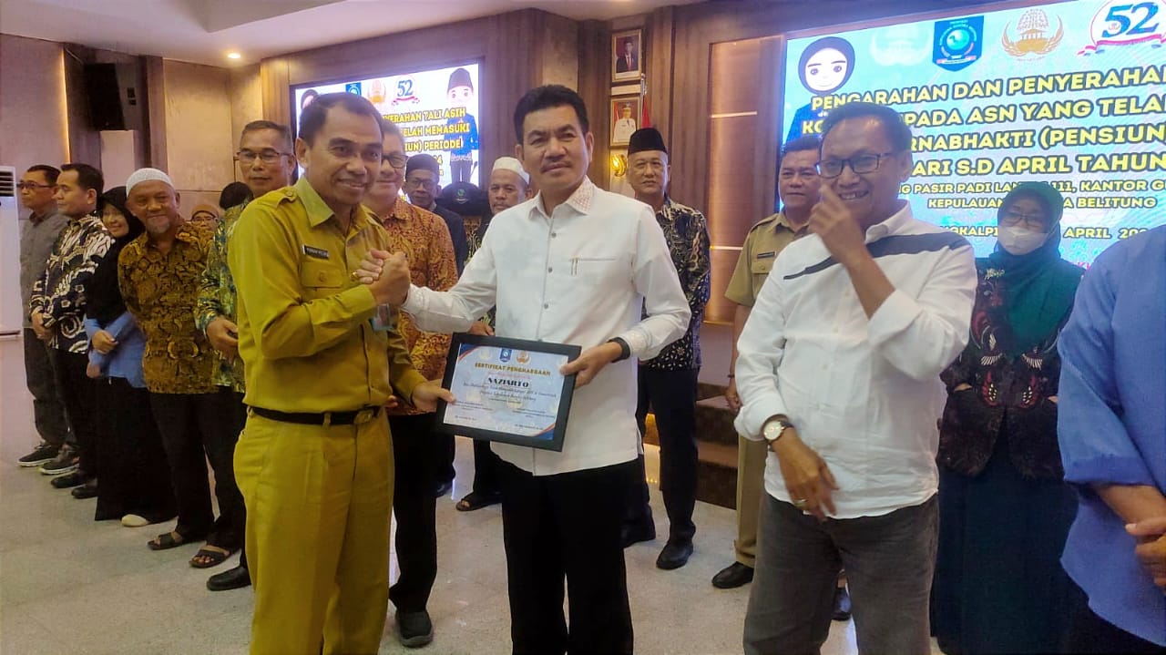 PANGKALPINANG - Sebanyak 30 orang Pegawai Negeri Sipil (PNS) di lingkungan Pemerintah Provinsi Kepulauan Bangka Belitung (Pemprov. Kep. Babel) yang telah memasuki masa purnabakti atau pensiun periode Januari hingga April 2024, menerima tali asih dari Pemprov. Kep. Babel.