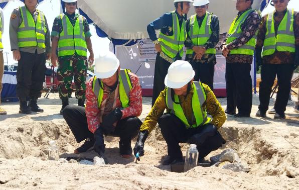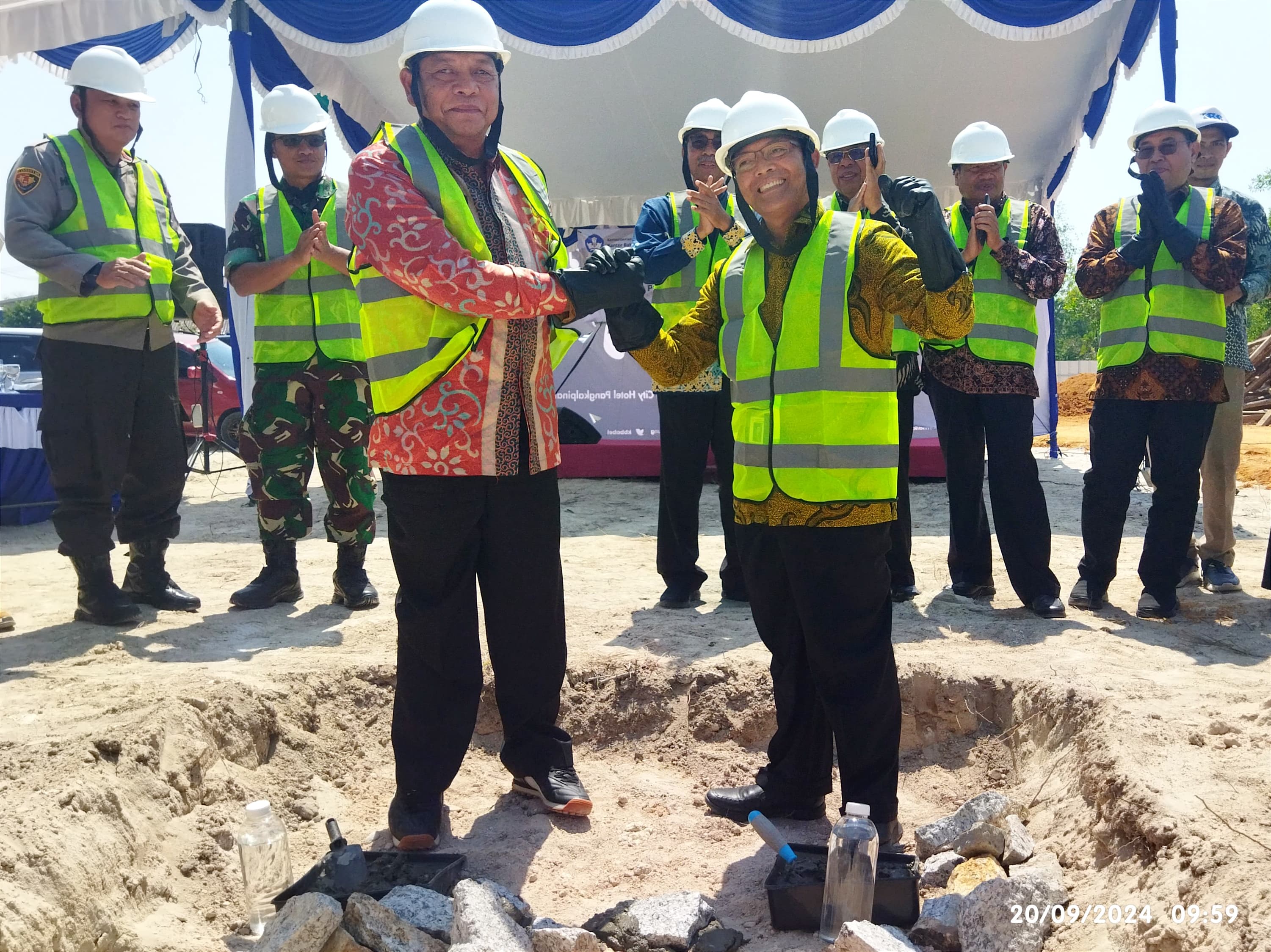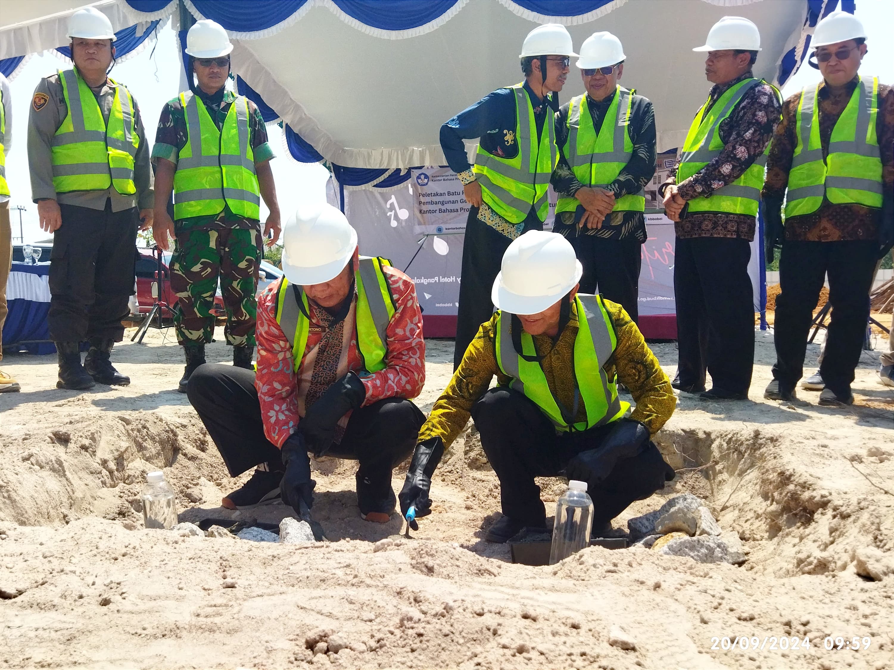 Penjabat (Pj) Gubernur Kepulauan Bangka Belitung (Babel) diwakili Pelaksana Tugas (Plt) Asisten Perekonomian dan Pembangunan Sekretariat Daerah (Setda) Babel Hartono melakukan peletakan batu pertama pembangunan gedung dan pagar Kantor Bahasa Provinsi Kepulauan Bangka Belitung yang berlokasi di Perkantoran Pemprov. Babel di Air Itam Pangkalpinang, Jumat (20/9/24).