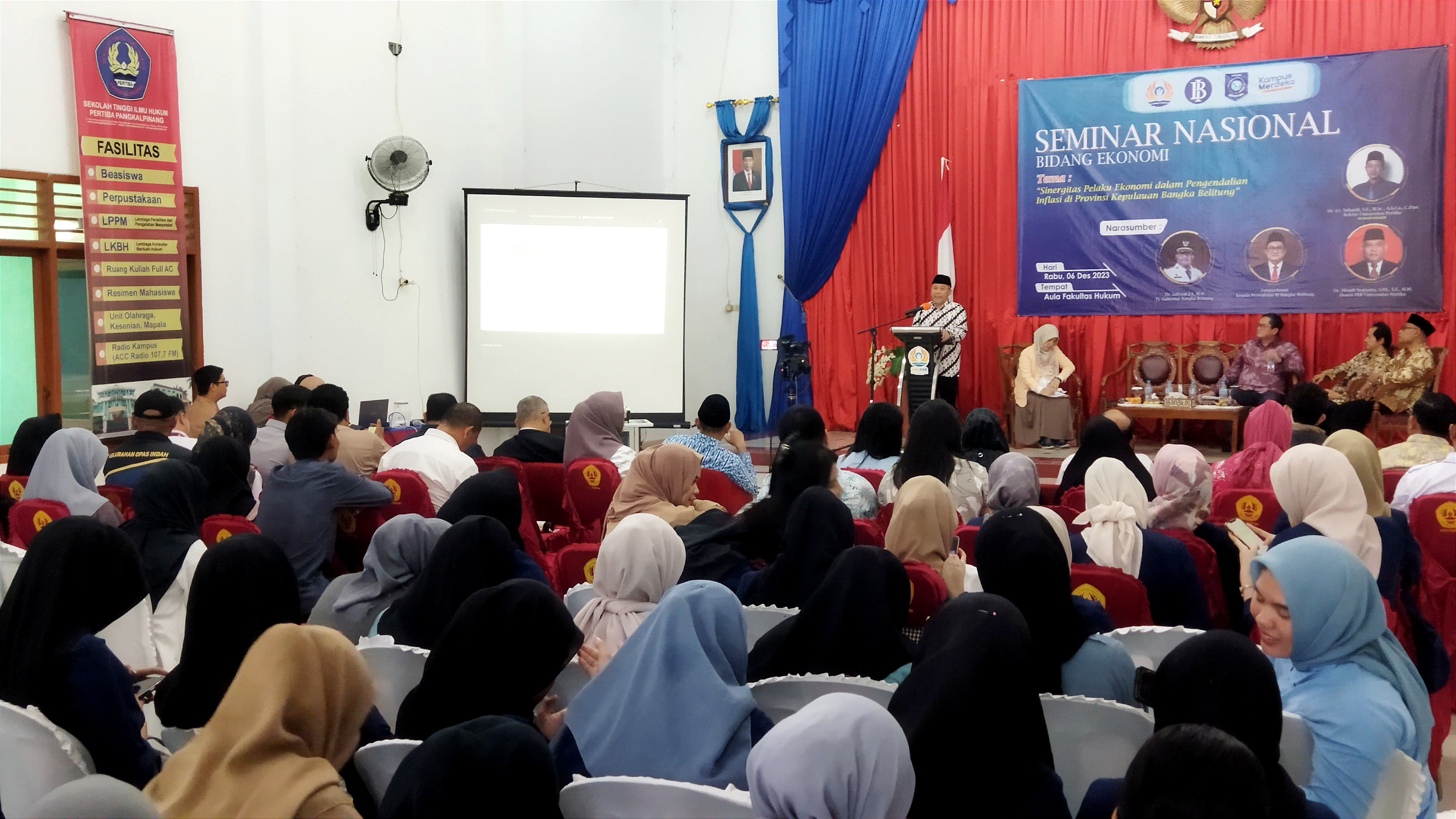 Turut hadir pada seminar, Rektor Universitas Pertiba Suhardi dan jajarannya, Kepala Perwakilan BI Bangka Belitung Faturachman, Dekan dan Dosen Universitas Pertiba, dan undangan lainnya.