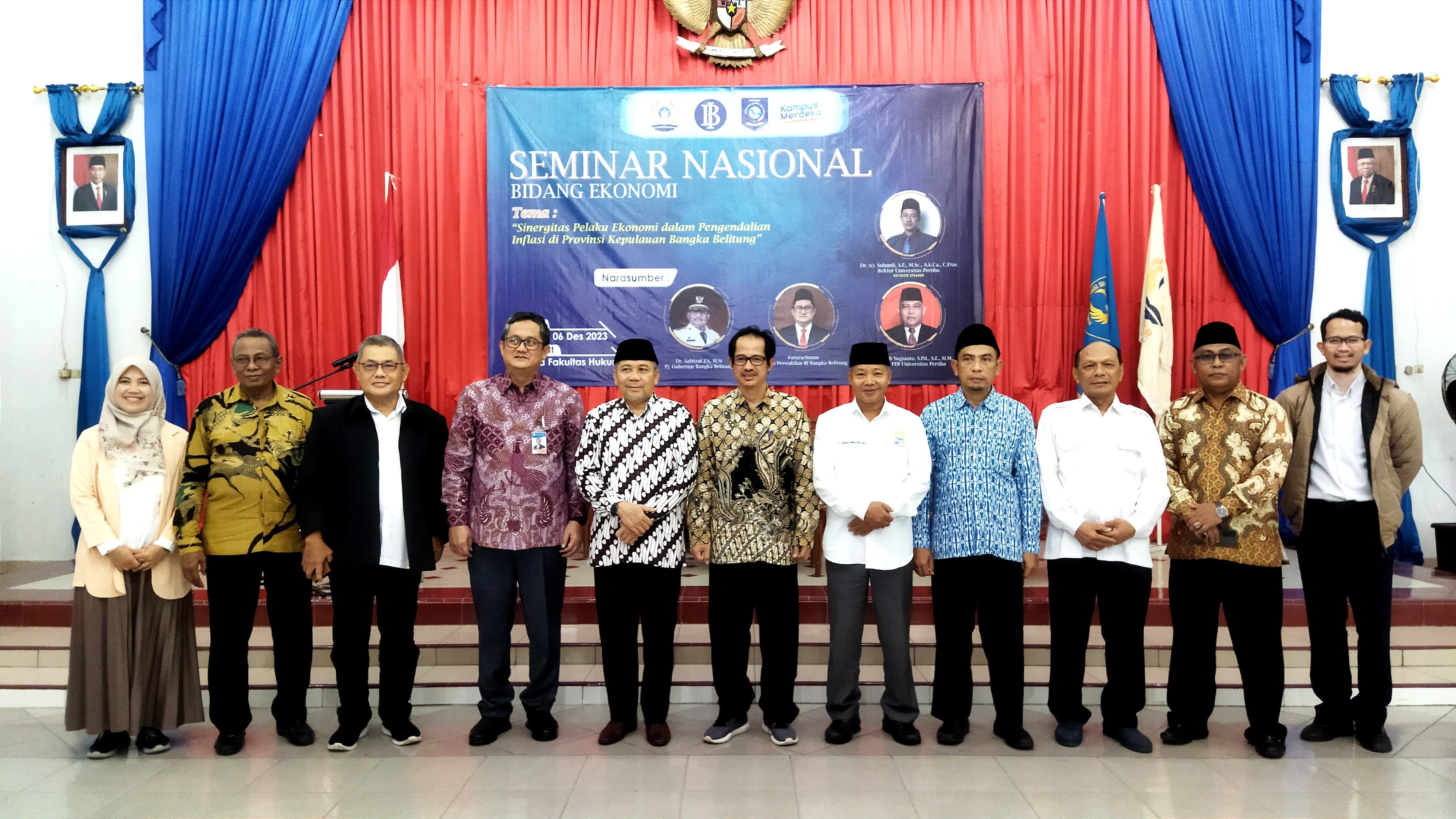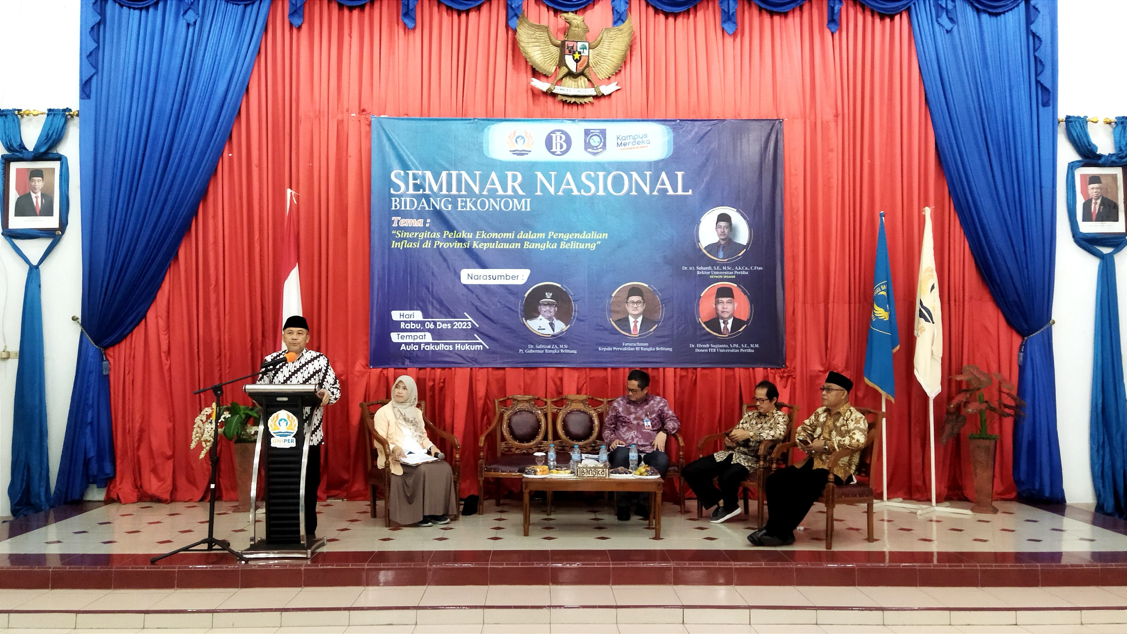 Hal ini diungkapkan oleh Plt. Asisten Perekonomian dan Pembangunan Ahmad Yani, yang juga Kepala Biro Perekonomian dan Administrasi Pembangunan Setda Prov. Kep. Babel mewakili Penjabat Gubernur Babel, saat menjadi narasumber pada Seminar Nasional Bidang Ekonomi dengan Tema "Sinergitas Pelaku Ekonomi dalam Pengendalian Inflasi di Provinsi Kep. Bangka Belitung Tahun 2023" bertempat di Auditorium Fakultas Ilmu Hukum Universitas Pertiba, Pangkalpinang, Rabu (6/12/23).