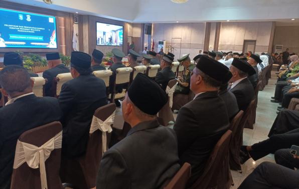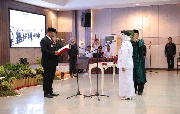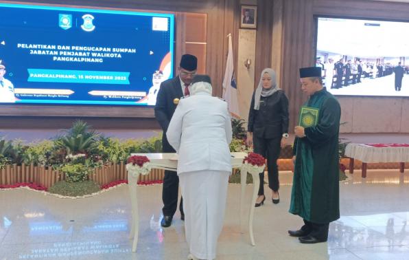 PANGKALPINANG - Pelantikan dan Pengucapan Sumpah Jabatan Penjabat (Pj) Walikota Pangkalpinang Tahun 2023, Dra. Lusje Anneke Tabalujan, M.Pd., menjadi agenda pertama Safrizal Zakaria Ali sebagai Penjabat Gubernur Kepulauan Bangka Belitung (Kep. Babel) di Ruang Pasir Padi Kantor Gubernur, Air Itam Pangkalpinang Rabu (15/11/23).