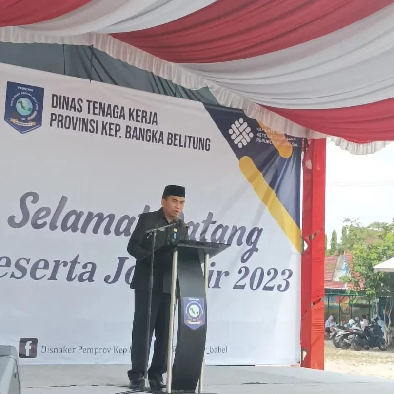 PANGKALPINANG - Asisten Administrasi Umum Yunan Helmi, mewakili Penjabat (Pj) Gubernur Kepulauan Bangka Belitung (Kep. Babel) Safrizal ZA, membuka acara Pameran Bursa Kerja (Job Fair) Provinsi Kep. Babel Tahun 2023 di Lapangan Balai Latihan Kerja Industri (BLKI) Disnaker Provinsi Kep. Babel, Air Itam Pangkalpinang (30/11/23).