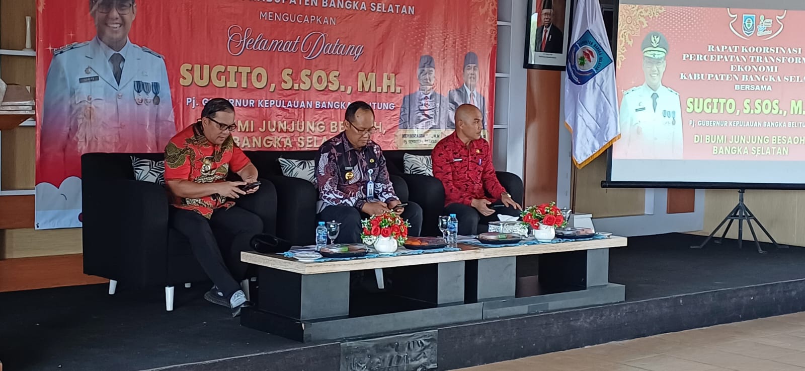 Di hari yang sama, kunjungan dilanjutkan ke Balai Daerah Rumah Dinas Bupati Bangka Selatan bersama Pjs Bupati Bangka Selatan, Camat, Lurah, dan Kades se-kabupaten Bangka Selatan untuk melakukan Rapat Koordinasi Percepatan Transformasi Ekonomi Kabupaten Bangka Selatan.
