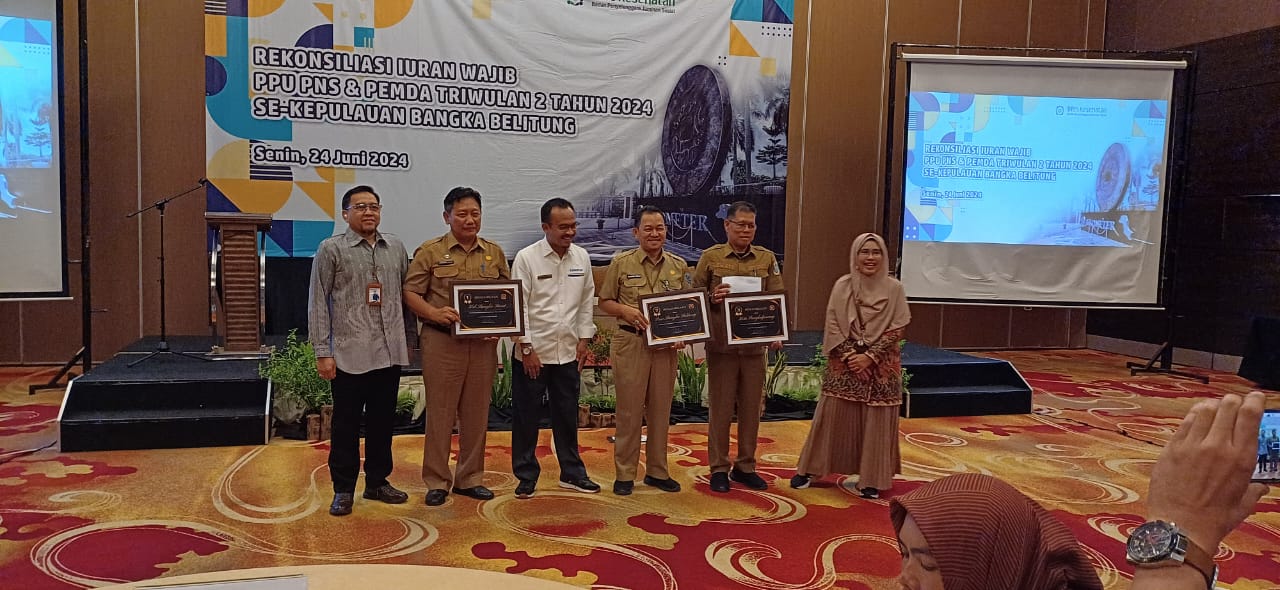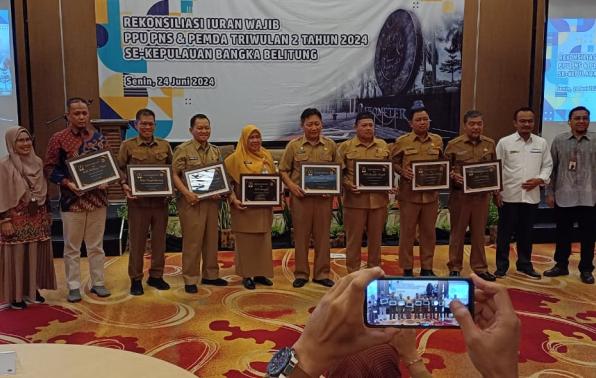 Penghargaan Kategori Pemerintah Daerah Membayar Iuran Tepat Waktu dan Tepat Jumlah Terbaik yakni terbaik 1 Kabupaten Bangka Barat, terbaik 2 Provinsi Kep. Babel, dan Terbaik 3 Kota Pangkalpinang.